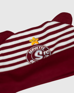 Le kit naissance SFC comprend un bonnet et une paire de chaussons assortis, parfaits pour garder votre bébé bien au chaud dès ses premiers jours. Un essentiel pour accueillir les plus jeunes fans du Servette Football Club.